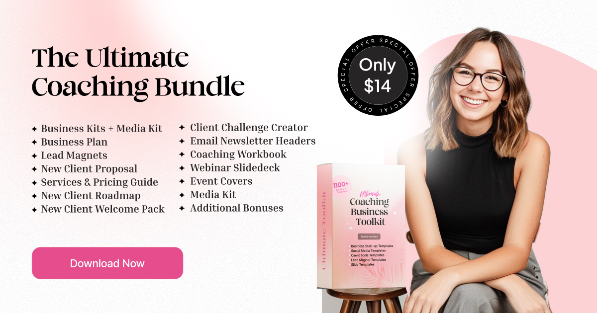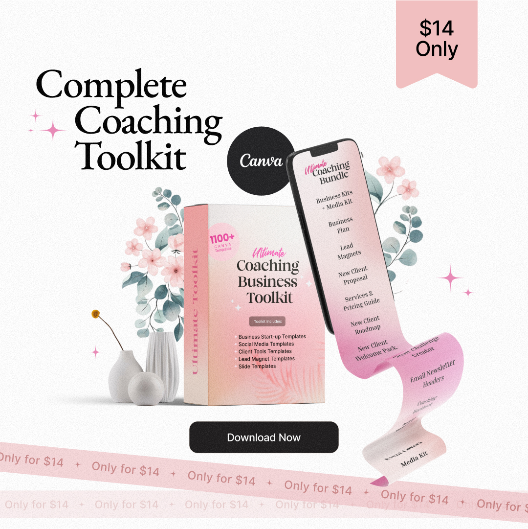 Don't wait. For a limited time only, you can grab the Ultimate Coaching Business Toolkit for the unbeatable price of just $14 (regularly $197).