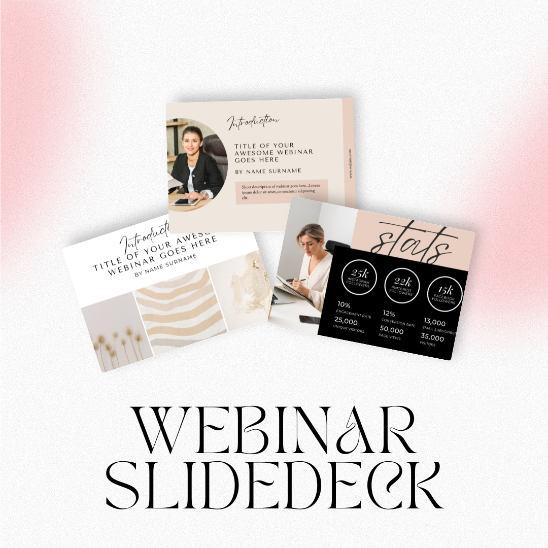 It is a common practice for Coaches to attract leads into a Webinar and then turn them into paying customers. The 60-page Presentation/Webinar Slidedeck will help you create well-crafted slides for your next Webinar.